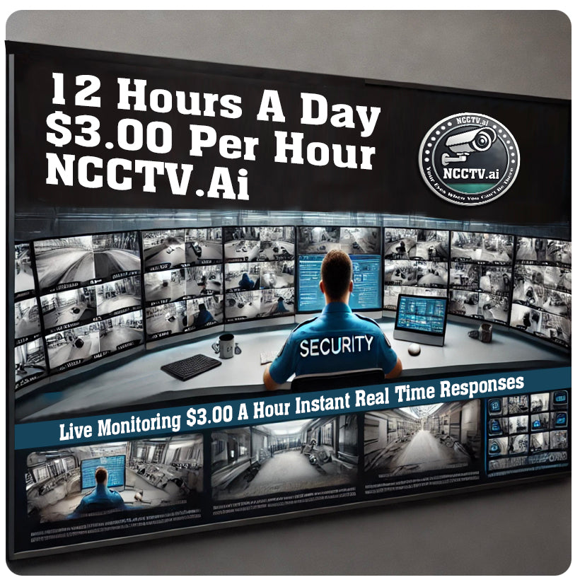 Protect your business or home with NCCTV.aiβs 12-Hour Live Monitoring Service! Our professional security team provides real-time, AI-assisted surveillance for 12 hours a day, every day, ensuring instant threat detection and active protection for your property.